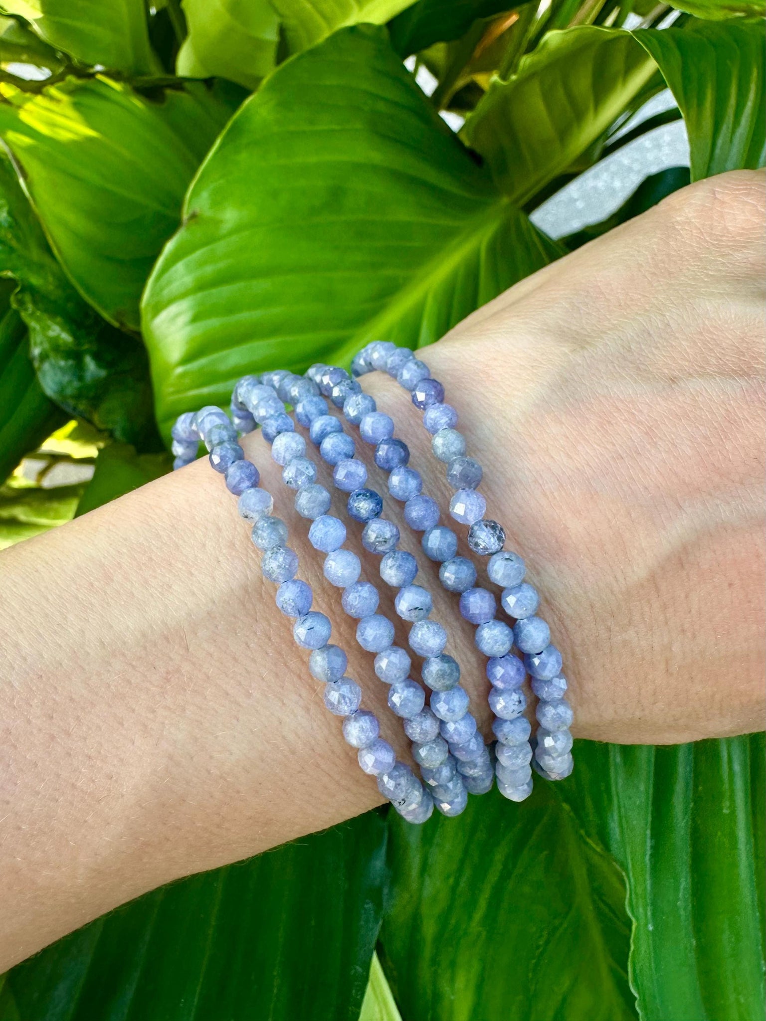 This Tanzanite gemstone bracelet is made with 100% natural 4mm faceted crystal beads. This piece will fit all standard wrist sizes 5 1/2 - 7 inches and is made with a durable heavy-duty elastic cord.