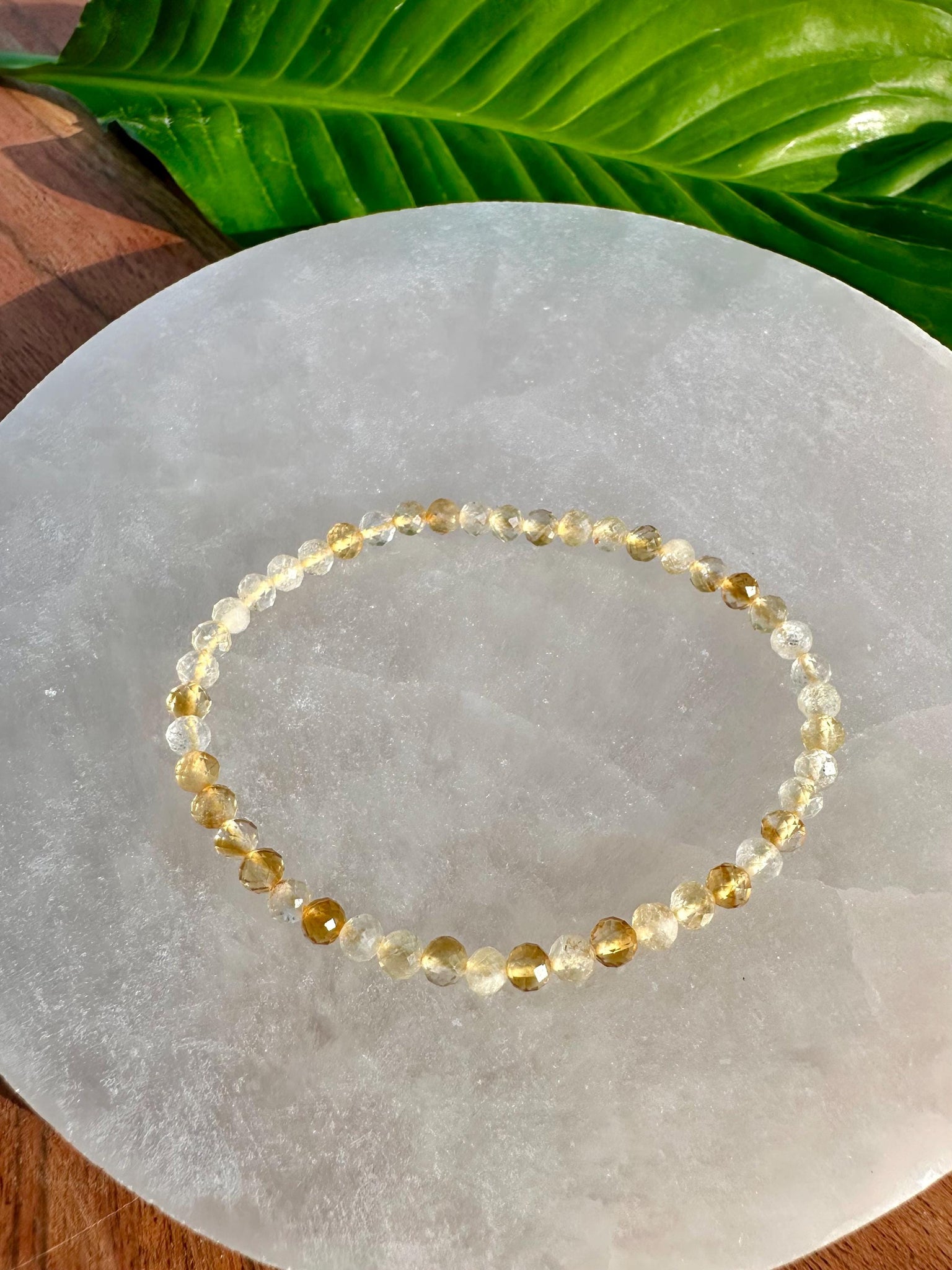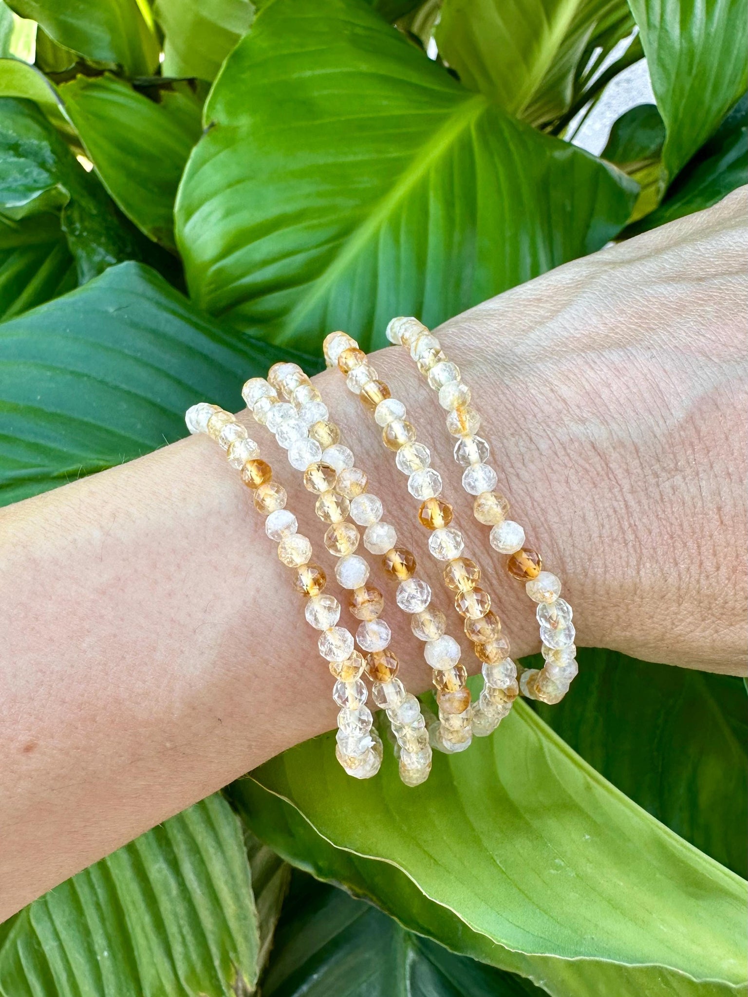 This Citrine gemstone bracelet is made with 100% natural 4mm faceted crystal beads. This piece will fit all standard wrist sizes 5 1/2 - 7 inches and is made with a durable heavy-duty elastic cord.